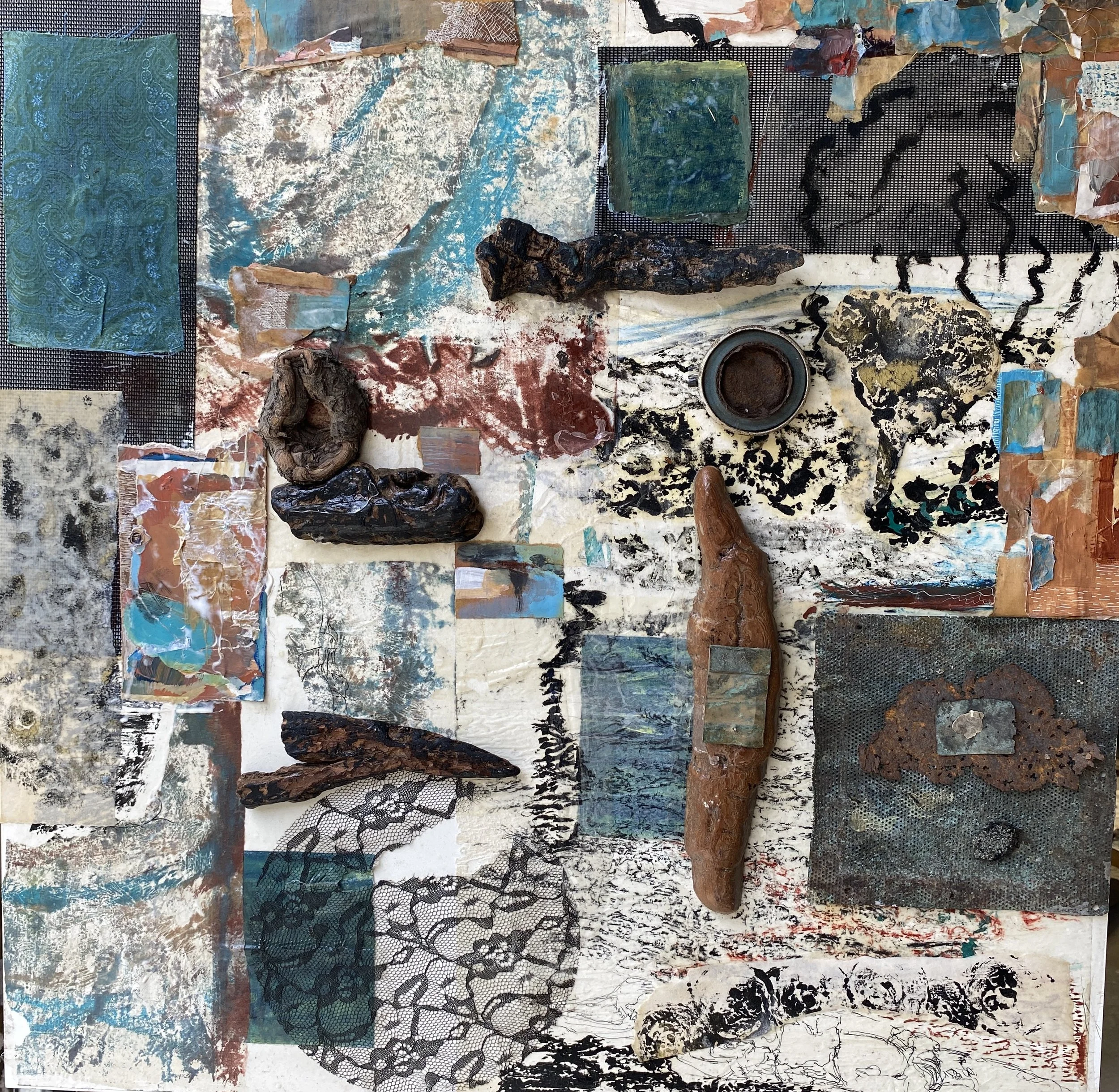 This is not your average pink flamingo, 2009, acrylic and collage elements on board, 20” x 26”, framed: 23” x 29”, $400